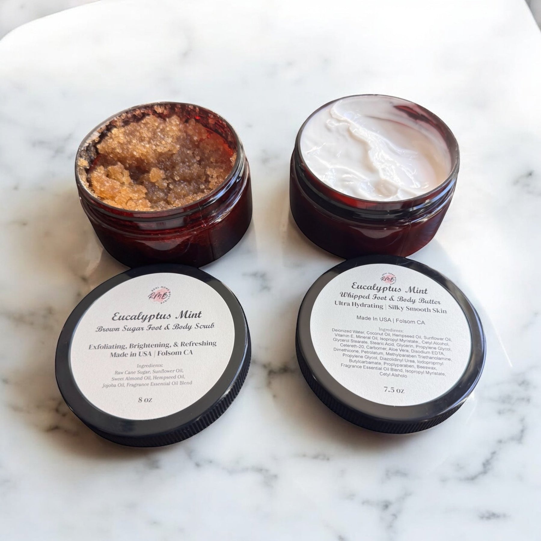 Refresh and pamper tired feet or your whole body with our scrub and lotion duos. Gently exfoliate with the brown sugar scrub, then lock in moisture with the nourishing lotion for soft, smooth, energized skin. Perfect for at-home spa days or gifting!