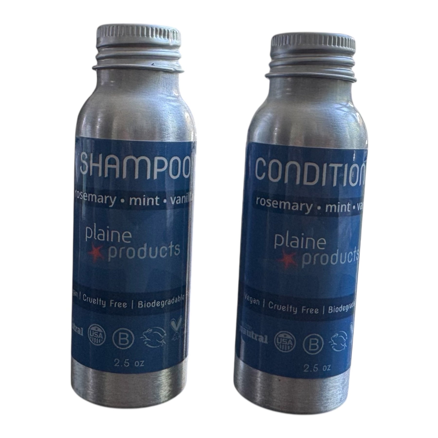 - Travel-size rosemary mint vanilla shampoo and conditioner made with vegan, hypoallergenic ingredients leave your hair soft and baby-safe.