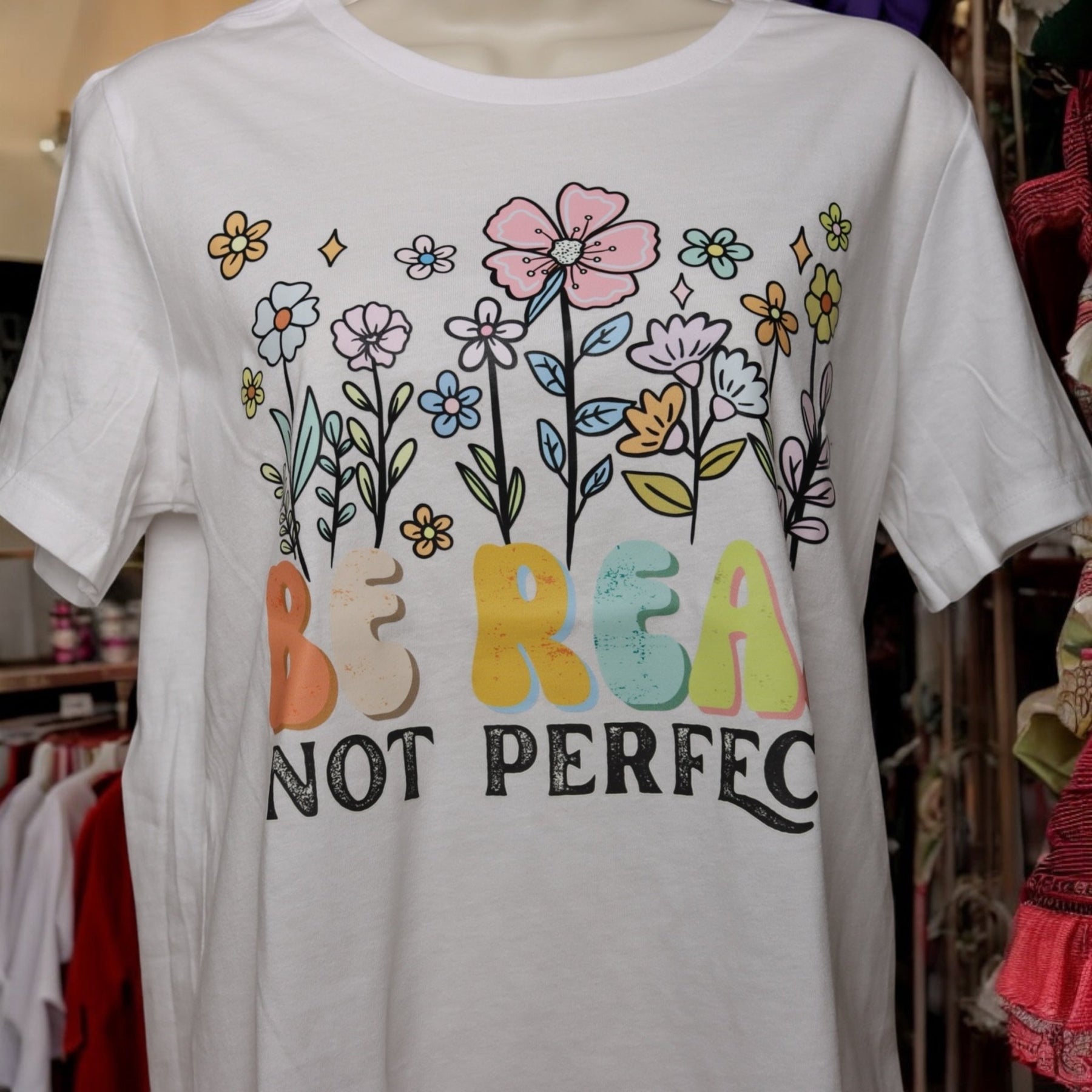 Bloom into your most authentic self with our Be Real Not Perfect tee—because perfection is overrated, but being real? That’s powerful. Featuring soft spring florals and a relaxed women’s fit, this tee is a gentle reminder to show up just as you are. Comfortable, breathable, and beautifully made to celebrate the perfectly imperfect you.