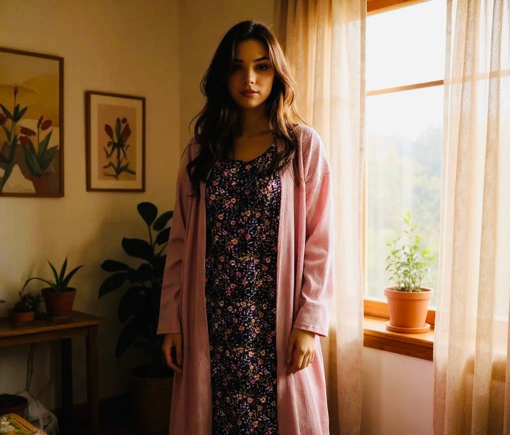 Postpartum Lounge Gown (85% Polyester, 15% Spandex)